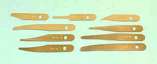 | ■エッチングソー エッチングソーのセット(左)とエッチングソーとケガキのセット(右上)。いずれも枠から切り取った状態です。 |