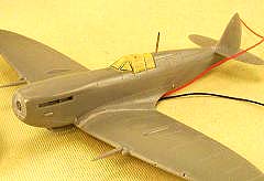 スピットファイヤーの下面にグレーを塗り、その上にマスキングをしたところ。 |