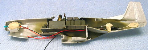| ■胴体艤装の完了 モーターと尾灯からコードを引き出しておき、コクピットとラジエター等の部品を取り付けて艤装の完成となります。 |