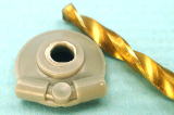 | スピナー基部の軸穴を、ジョイントが通過できる程度に拡大しておきます。プロペラ軸は、モーター側端が、固定用のエポキシパテ表面より3ミリほど突出するように、かつ、スピナー基部を取り付けたときの表面より約2ミリほどに内側になるようにします。スピナー先端側に突出した軸は、塗装時の保持とスピナー取付けのために長いままにしておき、最後に長さを調節します。 | |||||||